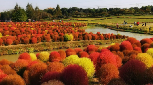 13:00-15:30 游览【花开海上生态园】,花开海上生态园,寻一场秋天的童话!鲜艳的红、浓郁的黄、青翠的绿,绚烂的色块拼贴成油画一般的景致,点缀了金秋最瑰丽的色彩,也燃烧着花开海上生态园最澎湃的激情。