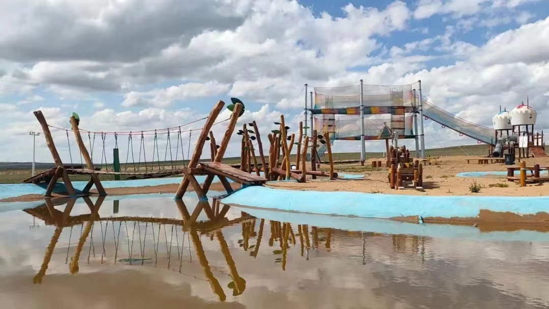 【丝路欢乐园】无动力儿童乐园,水上乐园/双层蹦蹦床彩虹魔网/荡秋千/独木桥/木马/凉亭/吊吊桥/翘翘板/ 滑梯/人力挖土机/库布其沙滩
