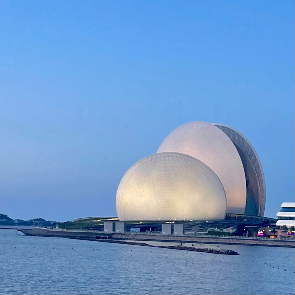 【珠海情侣路】,是珠海旅游的一大看点,也是珠海城市的标志性建筑之一,情侣路沿海边从南向北长达28公里,途径【渔女像】渔女献珠领戴珍珠,身掮渔网,裤脚轻挽,双手高擎着一颗珍珠,向世界昭示光明,带着喜悦而又含羞的神情。随后观赏珠海大剧院是中国唯一建设在海岛上的歌剧院。珠海大剧院由一大一小两组“贝壳”组成,构成了歌剧院的整体形象,因此得称【日月贝】。(外观)