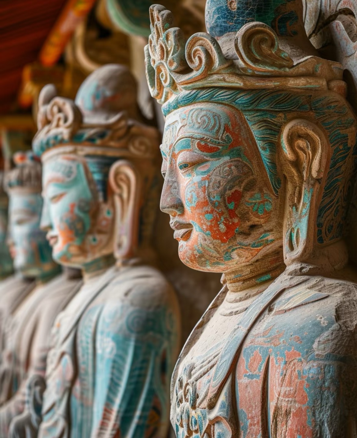 4、莫高窟如同一颗渐渐褪去光华的明珠,在自然氧化和人为因素的作用下,彩塑壁画正在慢慢失去神韵,所以出于文物保护的目的,在窟穴参观时是禁止摄像设备的。