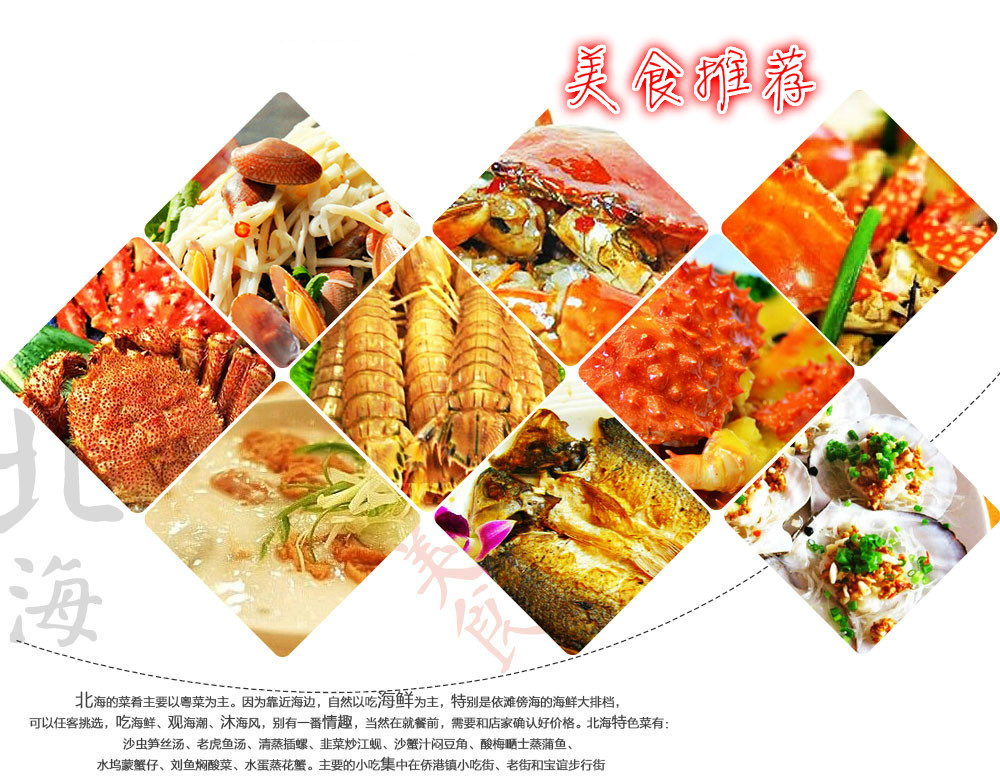用餐说明:北海的餐饮成本比较高,团餐餐标的餐质量一般,游客满意度一般,请组团社预先提示游客。节假日时餐厅存在排队等候用餐的现象,需游客理解和配合,耐心等候。