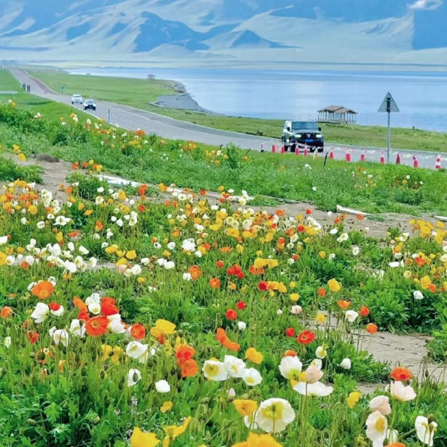 14:00-16:00游览天山山脉中海拔最高、面积最大被誉为西域明珠的—【赛里木湖+环湖】(含首道门票+环湖,游览约120分钟),赛里木湖群山环绕、水天相映。春季野花遍地,夏季绿草如茵,牧马奔驰,牛羊如云;湖水被青山环抱,山脚松柏参天,山腰云山雾罩,天水共色,似一副充满了雄旷清澈的诗意画卷。