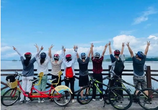 15:00-17:00 进行【千岛湖环湖骑行团建】(1.5-2小时以内).千岛湖环湖公路是国内最长的环湖景观公路。踏上自行车,绕千岛湖逐风骑行。在这里,步行太慢,开车太快,骑行正好。千岛湖有独立的自行车跑道,安全防滑,一路景色秀美。风景秀美处,可以停下屡屡造型,拍拍照片。骑行路线:半岛骑行驿站— 天清岛驿站—北欧驿站—上江埠大桥—枫桥岭茶园。
