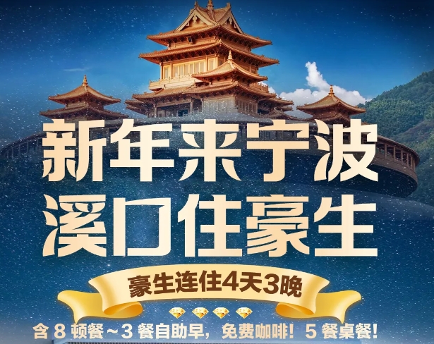 跟团游HowardJohnson🥇新年来宁波四日~溪口住豪生!『4天连住豪生连住-位置极好-3分钟就是溪口老街』奢华、大气、浪漫、上档次!3餐自助早5正餐,升级一餐蒋家宴,4天3晚499元/人