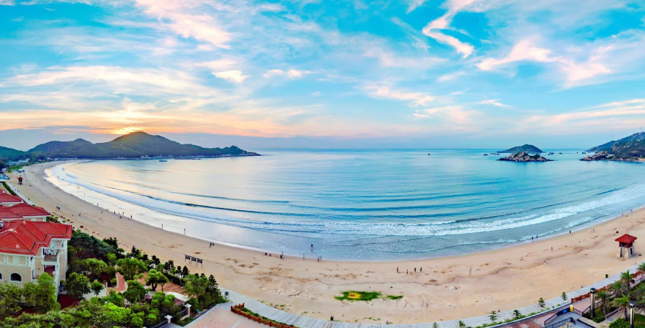 游览【青澳湾沙滩】大约游览30分钟,广东省著名沐浴海滩之一,金黄柔软的沙湾绵延,坡度平缓,沙质洁净,无礁石无淤泥,海水无陵质无污染。