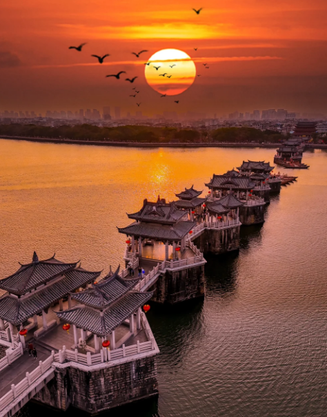 随后前往滨江长廊外观观赏我国的四大古桥之一“过河拆桥”【湘子桥】(自费套餐含门票),又称“广济桥”,是我国第一座启闭式石桥,设计非常独特。两边是石墩,有精美的亭台楼阁,中间则是 18 座古浮桥相连,在浮桥上走一走,感觉十分奇妙。