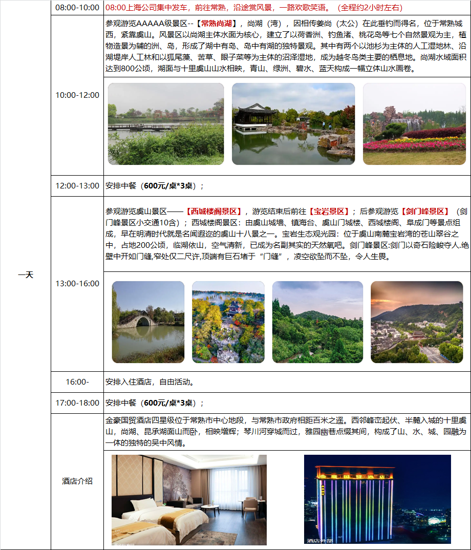 - 餐饮:全程1早3中餐,餐标600元/桌;