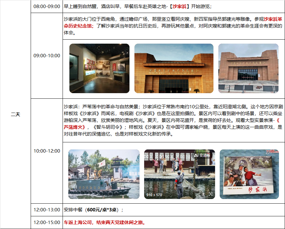 定制游【红色党建】红色党建之旅-常熟沙家浜含演出、虞山国家森林公园、船游尚湖党建二日
