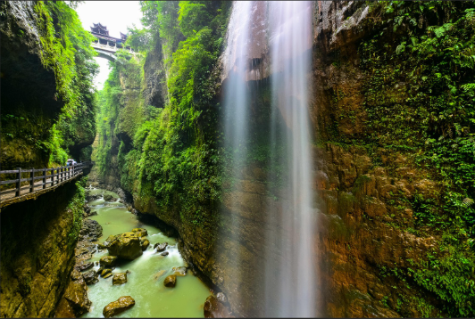 前往国家5A级景区【恩施云龙河地缝】云龙河地缝形成于5千万年前,是典型的喀斯特地貌石灰岩结构,特点是两岸岩壁陡峭,奇石林立,缝底流水潺潺,谷壁瀑布直泻,景区内古树苍翠,陡峭的岩壁上缀满了绿色的植物,瀑布飞流直下,轰鸣的流水声在地缝深谷中回荡,这是恩施大峡谷的大奇观,让我们一起走进“地球最美的伤痕”—“世界地质奇观喀斯特地形地貌天然博物馆”游地缝、看瀑布,感受大自然的神奇。