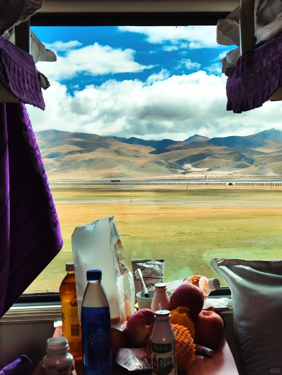 4、由于火车行驶时间长,可提前准备零食(如:饼干、点心、巧克力、水果、葡萄糖、防感冒冲剂等之类),西藏地区海拔较高,紫外线强烈,建议您携带好墨镜、防晒霜,润唇膏、水杯等用品。