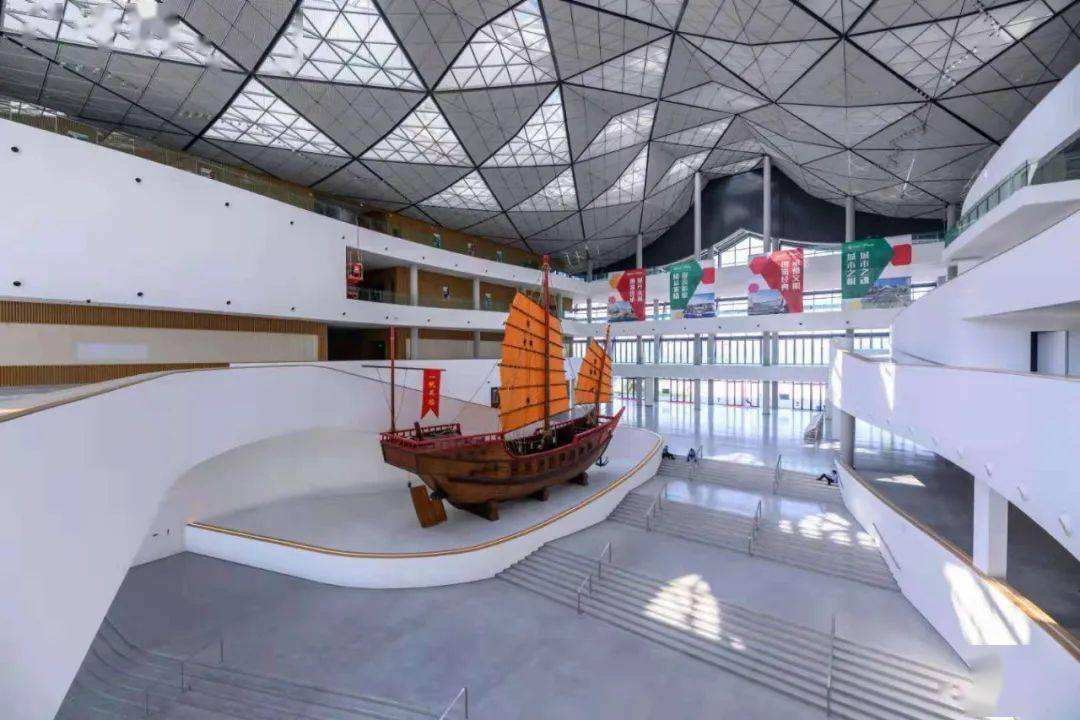 参观【潮汕历史文化博览中心】,主楼融入潮汕元素,十分具有特色,华丽呈现出形似潮汕民居的建筑立面。站在主楼前的亲水平台,远观主楼造型似延绵的山脊,似出海巨轮的船头,似潮汕民居五行山墙,又似大鹏展翅。中心以“潮都重器”为名,是一座集文化、展示、休闲、旅游等多种功能为一体、全方位体现和展示“大潮汕”文化的大型博物馆。