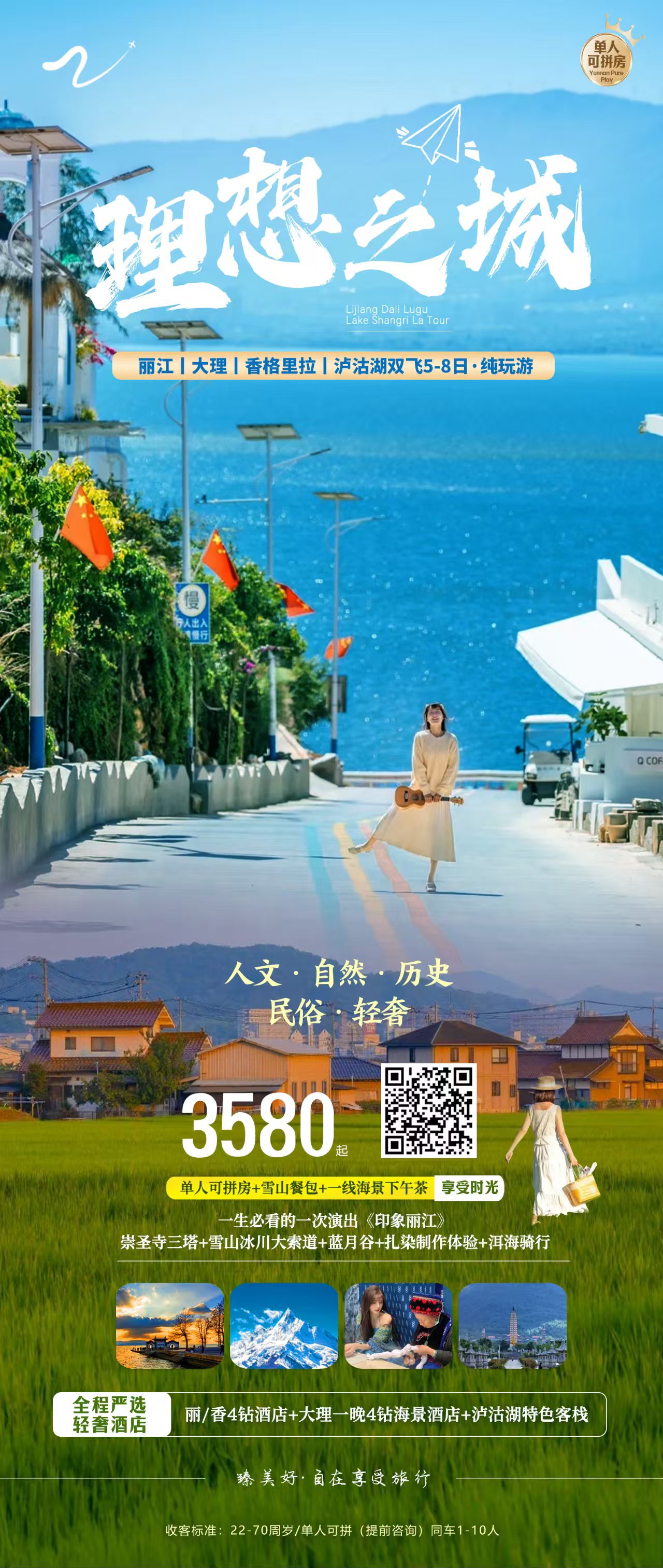 【金秋】【理想之城】丽江/大理/香格里拉/泸沽湖双飞8日《丽江4钻酒店+升级一晚海景酒店+香格里拉藏式酒店+泸沽湖特色客栈,纯玩无购物,一价全含0自费