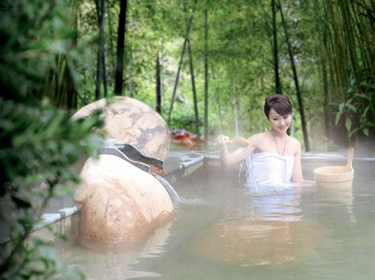 14:00-17:00 享受5星级【御水露天温泉】:将休闲度假和温泉养生、娱乐有效进行结合,以自然生态、中国传统君王文化及江南古山村特色为精华,结合现代休闲度假理念,以泛亚洲度假风格与中国江南山村特色元素巧妙并存,成为中国首家原生态人文景观型天然温泉;