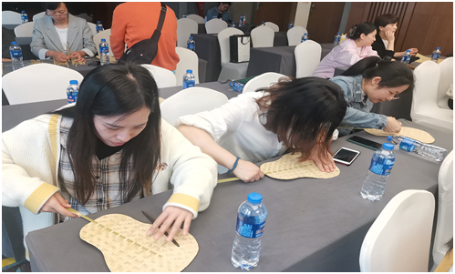 早上后前往前场地进行【安吉竹艺DIY体验】。了解竹编工艺大体可分起底、编织、锁口三道工序。在编织过程中,以经纬编织法为主。在经纬编织的基础上,还可以穿插各种技法,如:疏编、插、穿、削、锁、钉、扎、套等, 使编出的图案花色变化多样。需要配以其它色彩的制品就用染色的竹片或竹丝互相插扭,形成各种色彩对比强烈、鲜艳明快的花纹。制作完成可以带回当做一份纪念礼品哦。