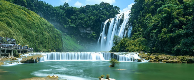早餐后乘车前往安顺参观国家AAAAA级风景区黄果树景区;换乘景区环保车(不含环保 车50元/人+景区保险10元/人,非必消黄果树往返大扶梯50元/人) 游览瀑布群最宽的