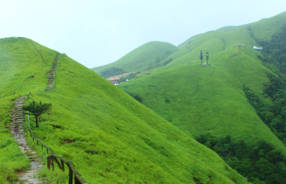 早餐后车赴有天上草原之称的---【武功山风景区】(门票70,车程约1.5小时,游览时间约4小时),一级索道上山(索道:上行65元,下行50元,可远眺迎霞亭、尽心瀑、飞来石、寒婆岩)至中庵,步行体验惊险剌激的全长1000多米的高空栈道,游福星岩、问道台、许愿石,步行上山或经百米悬空索桥,游福星谷栈道(高浓度负氧厘子空气、千米木质栈道、俯览山脚村落)乘云中索道(二级索道)上山(索道:上行35元,下行25元),