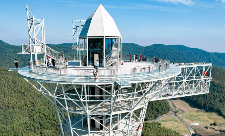 竹海漂流、天际缆车(一次)、天际探险塔、高空玻璃观景台、七彩滑道,滑草,射箭。