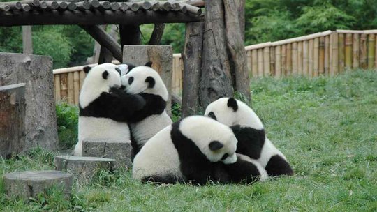 【景点:都江堰熊猫乐园】:是世界唯一的大熊猫救护与疾病防控研究的专业机构,占地760亩。观赏区有四个园:盼盼园、双楠园、临泽园、蝶泉园。整个园区,可看到约20只大熊猫。建筑与自然环境巧妙融合,为大熊猫创造了一个良好的生活环境。