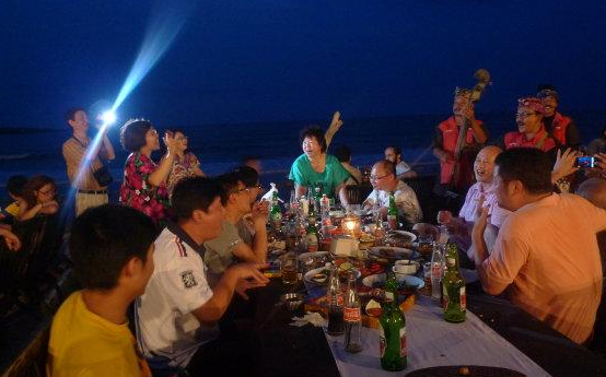 18:00-22:00 18:00开始在沙滩上进行沙滩KTV+篝火晚会+烧烤活动。