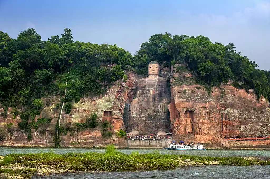 3、乐山大佛进入景区,亲临大佛抱佛足,绝不云雾缭绕远观(船游)佛影。