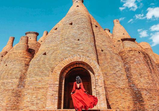 土林游玩结束后驱车前往【弥勒】,抵达弥勒我们游玩具有摩洛哥风格的【东风韵】,古怪的城堡火爆网络--万花筒艺术馆,带着特有的民族风情,粗犷豪放,却又显得如此细腻,建筑外形酷似造型各异的酒瓶,红色的砖墙的艺术形态,将西方穹顶与中式瓦窑相结合,饱含了抽象的后现代主义元素。