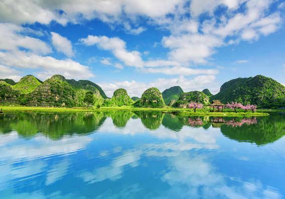 早餐后驱车前往被誉为陶渊明桃花源的现实版【世外桃源·坝美】(含观光车+游船),乘坐观光车到桃源洞乘坐景区游船穿过约1公里的水洞,映入眼帘的是别有洞天的幽静秀美,四周群山环抱,八座山峰一字排开如一副水墨画卷!可自由拍摄:榕树、木棉、大青树、花红、芭蕉、海芋、水车、农舍、翠竹、寸田、小道、村寨等素材!
