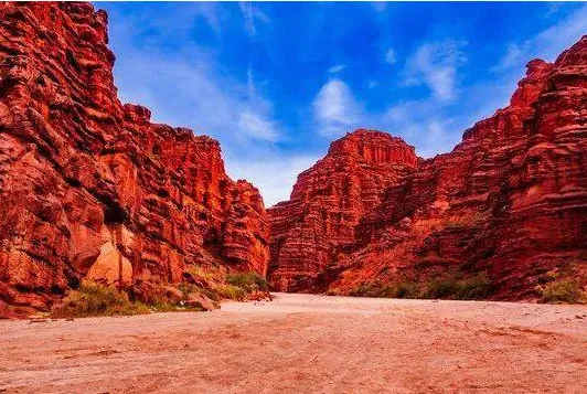 14:30-17:00 后前往克孜利亚大峡谷参观,沿独库公路南段行驶,沿途是寸草不生的盐碱地,还有一段雅丹地貌土丘,远望去一片赭红色山体就到了【克孜利亚大峡谷】;进入景区后岩壁如同被火焰烧 得通红,蔚为壮观,谷口开阔,谷底平坦,谷内曲径通幽,别有洞天,两侧峭壁直插云天, 配合阳光角度的移动光影万千,颇具异域风情;后前往库车