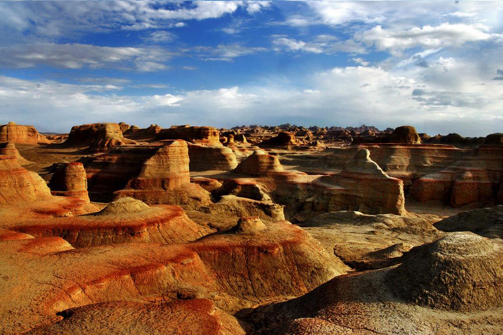 14:00-20:00 前往【世界魔鬼城景区】(游玩约3小时),购票后换乘特色小火车进入游览,开放式的车厢方便拍照,循着讲解器的指引,远观有的形似雄鹰展翅扑面而来,有的形似天狗望月惟妙惟肖,有的形似泰坦尼克蔚为壮观日出之前步行爬上观景平台。