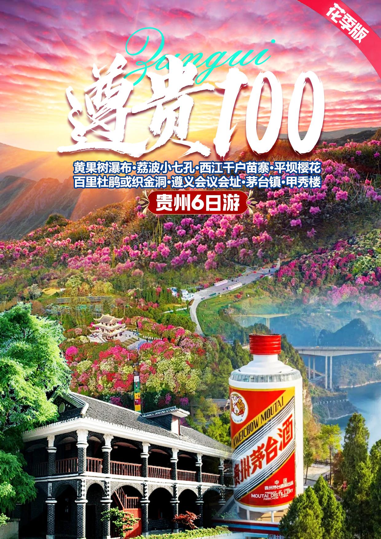 跟团游【金秋】【寒假】【遵贵100】贵州黄果树+小七孔+西江千户苗寨+遵义会议会址+茅台镇+龙里油画大草原双飞6日游