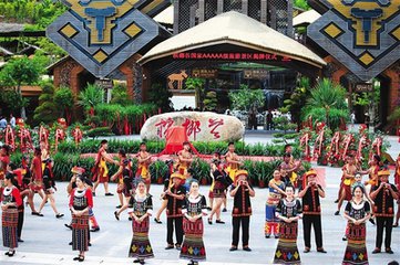✤ 【槟榔谷】在海南腹地的苍翠雨林间,槟榔谷将千年黎苗文化娓娓道来。船形屋上藤蔓垂落,阿婆织锦的腰机咔嗒作响,阿哥吹奏鼻箫声回荡山谷。这里不仅是非遗的活态博物馆,更是闯入山海秘境的起点,体验黎族异域风情。