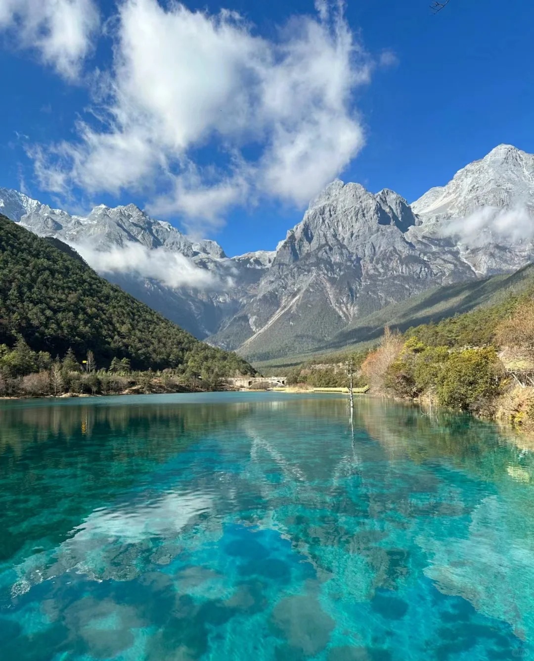 之后前往游览【蓝月谷】(赠送电瓶车),雪山脚下的人间仙境,因绝美山水,被称为“小九寨”,这里以玉龙雪峰为衬,四围林莽苍翠,雪山上融化而下的水从东麓山谷而过,形成“玉液”、“镜潭”