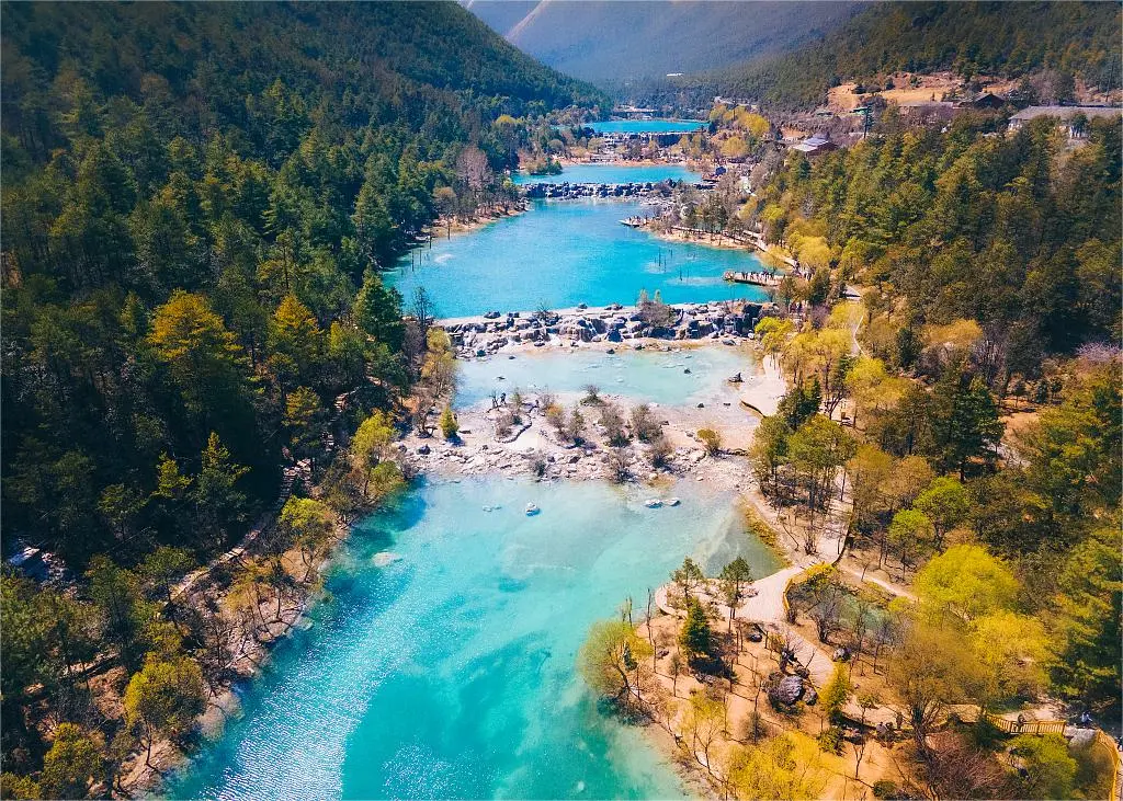 后前往游览【蓝月谷】(赠送电瓶车),源自雪山的万古冰雪消融之后顺着峭壁流淌而下,不断汇集为山涧、溪流,最终在蓝月谷中形成了清澈见底、甘冽无比的河流。晴天时,水的颜色是蓝色的,山谷呈月牙形,远看就像一轮蓝色的月亮镶嵌在玉龙雪山脚下