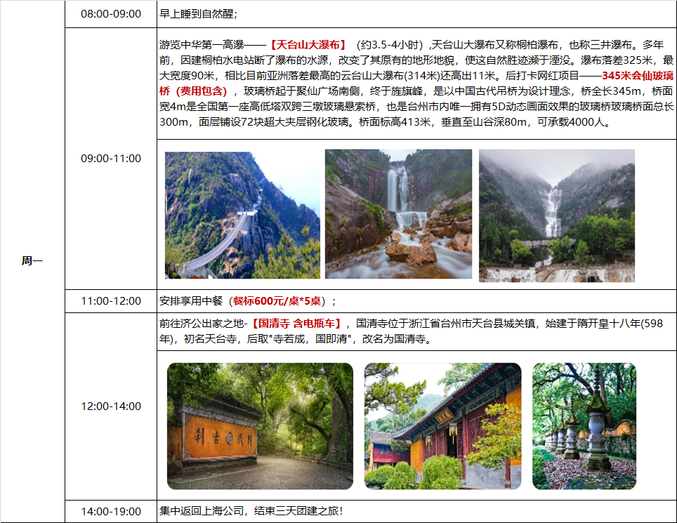 定制游【公司定制】台州神仙游-台州大神仙居(含上下程索道)、天台山大瀑布、登会仙桥、逛紫阳老街、激情漂流、5A国清寺祈福尊享三日