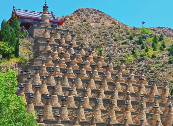 ◈早餐后参观国家5A级景区--【青铜峡黄河大峡谷.108塔】(参观约2.5小时),一百零八塔是中国现存的大型古塔群之一,始建于西夏时期的喇嘛式实心塔群。青铜峡水库西岸崖壁下,塔群坐西面东,依山临水,塔基下曾出土西夏文题记的帛书和佛祯。“游在宁夏、吃在吴忠”、午餐安排吴忠特色美食--吴忠早午茶宴。