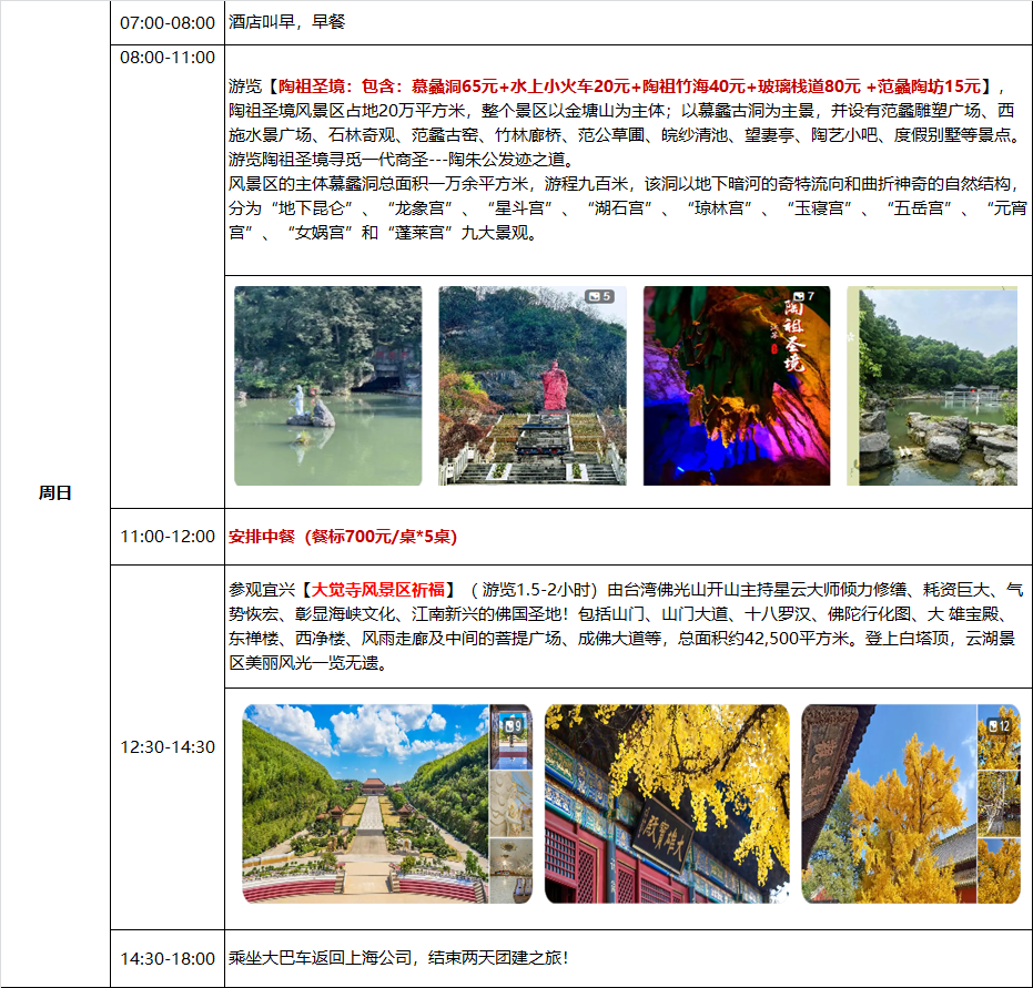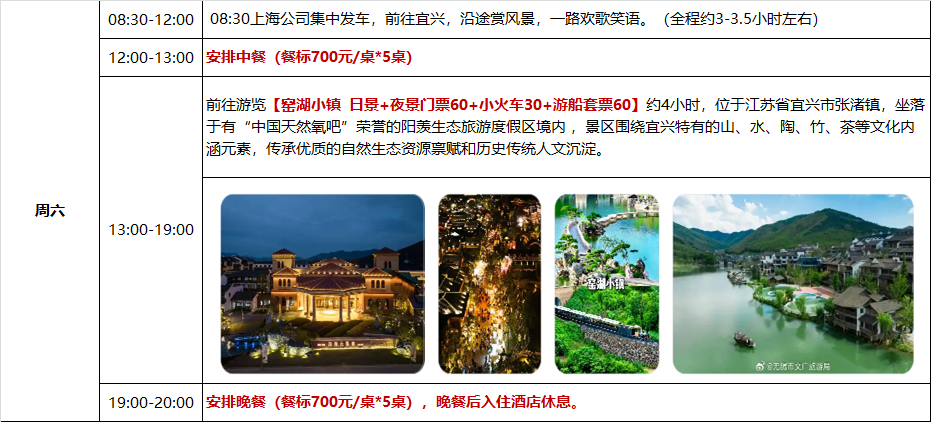 - 餐饮:全程1早3中餐,餐标700元/桌;