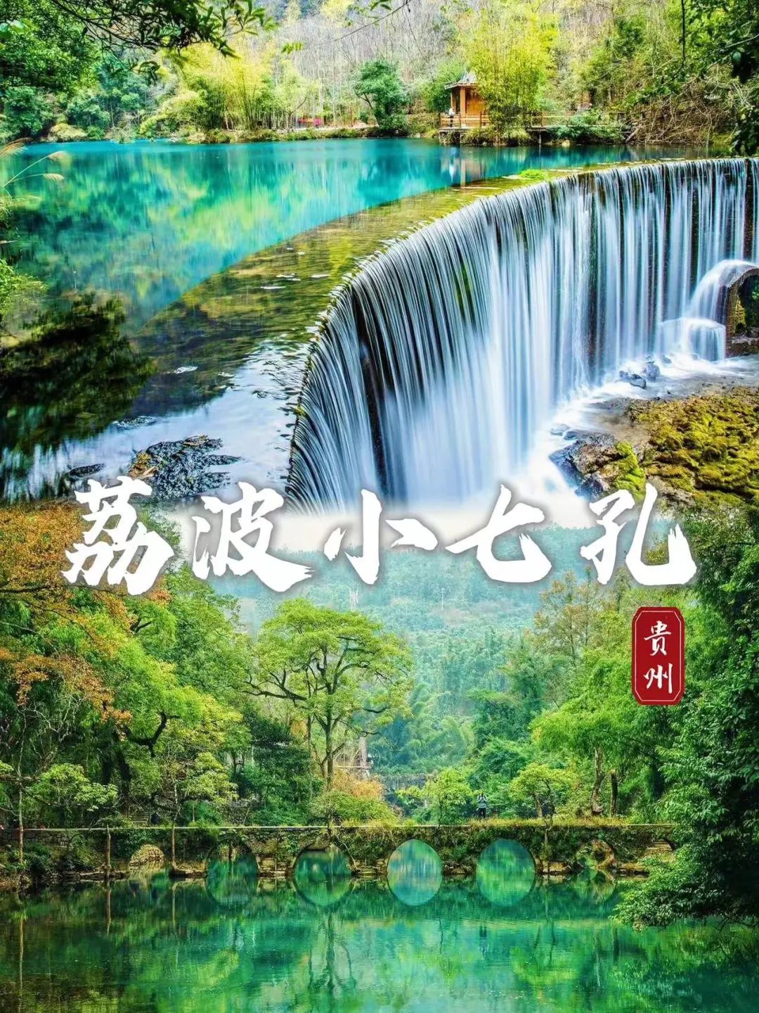 上午:早餐后乘车前往荔波。抵达后享用中餐,早餐后游览世界自然遗产地,国家级5A景区,中国最美丽的地方【小七孔】(不含小七孔电瓶车40元/人,保险10元/人,必须消费敬请自理)在宽仅1公里、长12公里的狭长幽谷里,集洞、林、湖、瀑、石、水多种景观于一体,玲珑秀丽,有“超级盆景”的和镶嵌在地球腰带上的绿宝石美誉。游览景区名字由来地【小七孔古桥】。