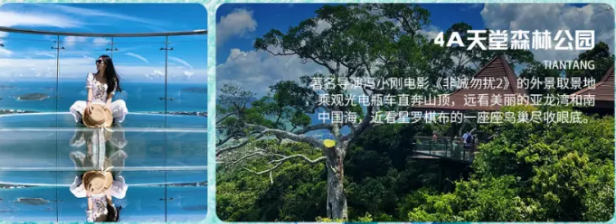 "精选酒店<br/>连住酒店4晚4钻连住不挪窝<br/>经典景区<br/>蜈支洲岛5A、南山5A、🚁直升机体验、⛲天堂森林公园4A、 畅玩亚特兰蒂斯水世界<br/>"