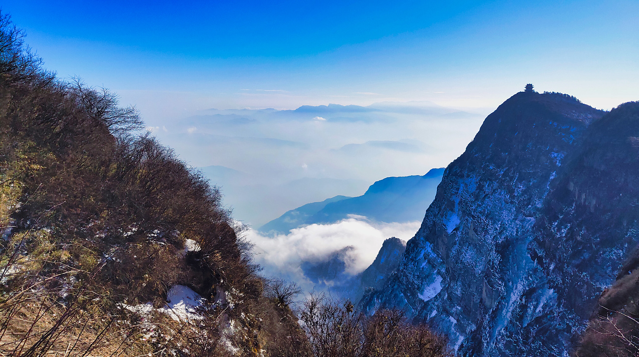 乘索道(索道费用自理65元/人)上【金顶】,朝拜【十方普贤圣像】,参观金顶【华藏寺】和“银殿”【卧云庵】,天气晴好时还可遥望远方的贡嘎峰;游览【金刚嘴】【舍身崖】等景点,运气好时有幸遇到佛光。