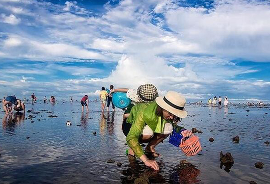抵达海岸滩涂渔场,步行5分钟至海边,在海边资深渔民带领下到滩涂渔场体验赶海乐趣。卷起裤子、带着特制的工具,到浅海滩涂捕捉鱼虾、挖蛤蜊、捡贝壳,享受大海的馈赠~