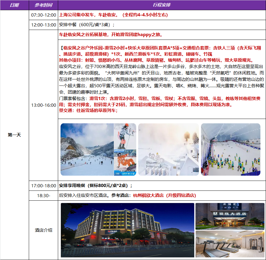 定制游【冬日滑雪首选】公司团建-临安大明山赏雪景、风之谷2小时滑雪团建畅玩纯玩两日(升级入住四钻酒店)