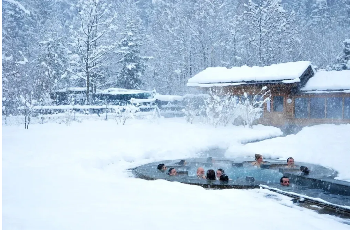 ▲【洗浴文化】+【室内温泉】+【寒地温泉】+【嬉水乐园】【赠送,不参加不退费,泳装自备】:零下二十度,在冰天雪地的半山腰上泡温泉,那种超级爽、冷、并快乐着的极致体验。自然水温达 45-55 度,温暖宜人,洗去一天的疲惫,泡在室外的温泉中,舒服一秒是一秒”那种冰火两生天的感觉让您一生难忘,琼花落满发间,寒冷消失不见。换上泳衣,开始温泉体验之旅。