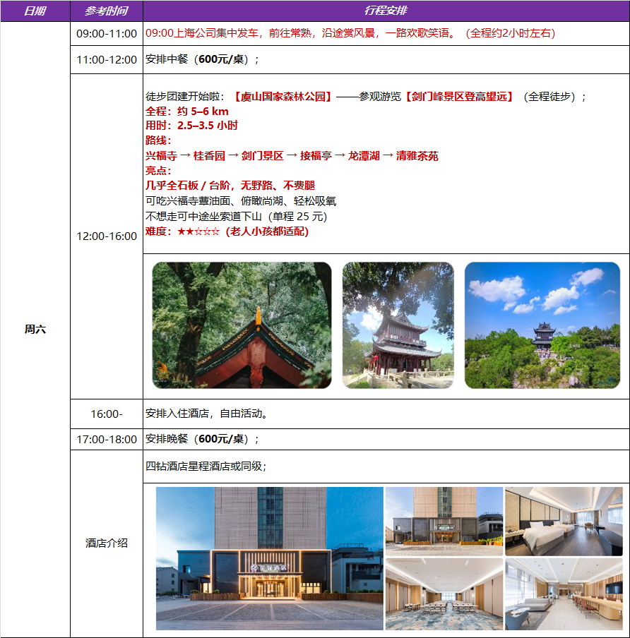 - 住宿:周末一晚全程入住常熟四星酒店;