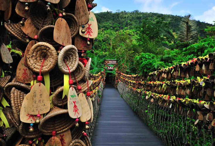 ★【亚龙湾热带天堂森林公园】:(游览不少于120分钟),堪称离城市最近的天然森林氧吧。乘观光电瓶车直奔山顶,远看美丽的亚龙湾和南中国海,近看星罗棋布的一座座鸟巢尽收眼底,重温电影中的浪漫爱情。